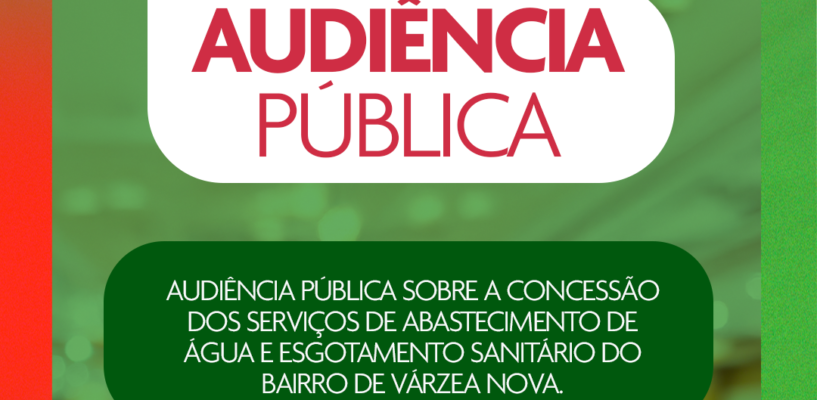 A Câmara Municipal de Santa Rita vai promover uma audiência pública para discutir a concessão dos serviços de abastecimento de água e esgoto sanitário no bairro de Várzea Nova. O encontro será realizado nesta quarta-feira (24), a partir das 19h, na Primeira Igreja Batista de Várzea Nova, localizada na Rua João Gomes Vieira, em frente à Praça João Raposo Filho.